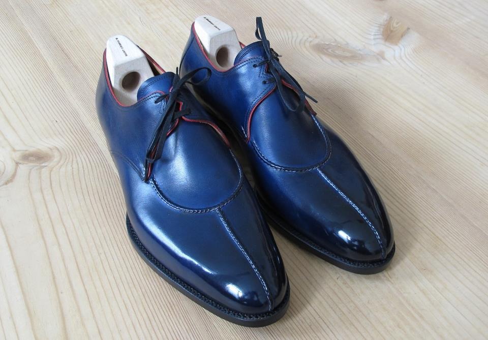 Christmas Blue Split Toe Handmade Leather Men's Lace Up Shoes