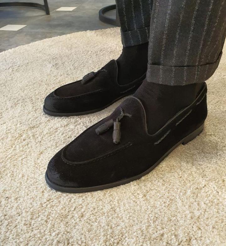 Christmas Black Tassels Loafer Suede Foarmal Wear Shoes