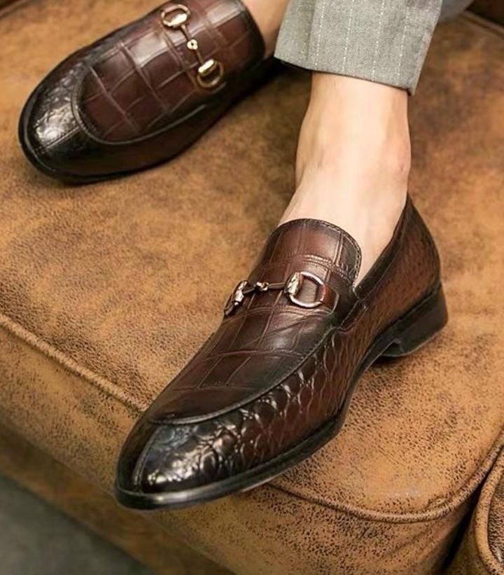 New Chocolaty Alligator Skin Moccasin Hand Stitch Shoes For Gentlemen