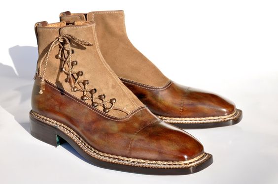 Custom Handmade Men's Brown Side Lace Up Fastening Dress Boot