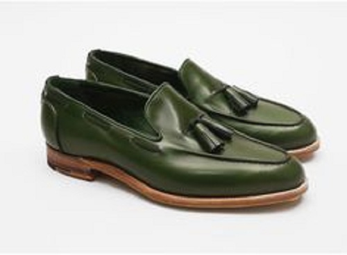 Best Men Green Color Tassels Shoes, Men Green Leather Tassels Loafer Shoes