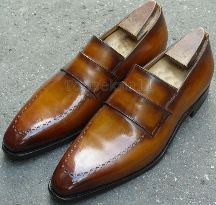 Classic Handmade Men's Leather Tan Slippers Casual Dress New Loafers Fashion 2020