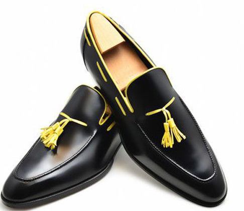 Handmade Black Tassels Loafer Leather Men's Stylish Shoes