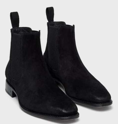 Hot Sale Black Suede Hand Stitch Chelsea Boots, Men Square Toe Suede Ankle Boots
