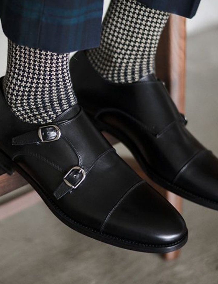 Mens Handmade Monk Shoes,Men Office Buckle Black Shoes