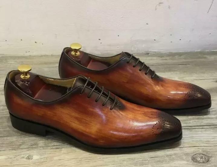 Handmade Mens Classic Narrow Toe Two Tone Lace Up Handmade Shoes