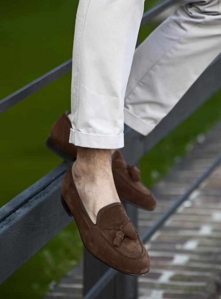 New Handmade Dark Brown Suede Tassels Loafer Shoes For Men