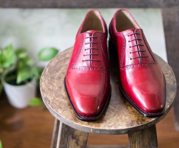 Handmade Men Red Leather Dress Up Bespoke Lace Up Weekly Wear Shoes