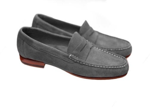 Hand Stitch Grey Genuine Suede Moccasin Slips On Loafer Formal Wear Shoes