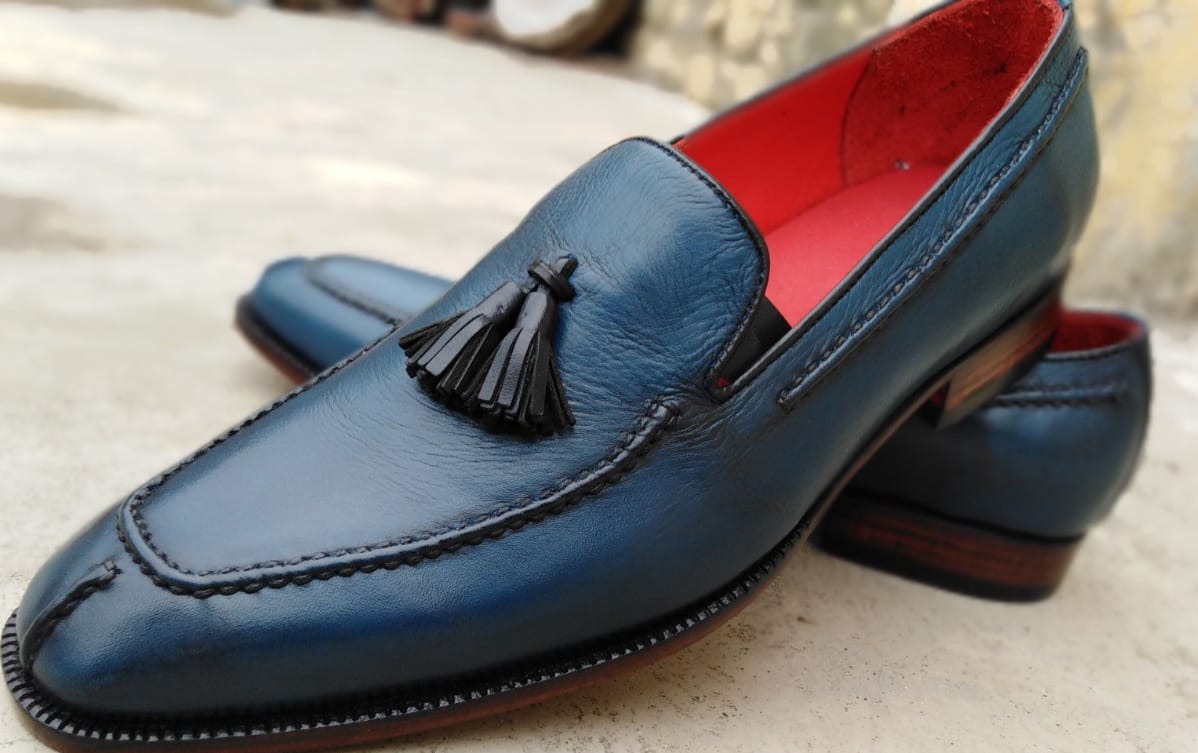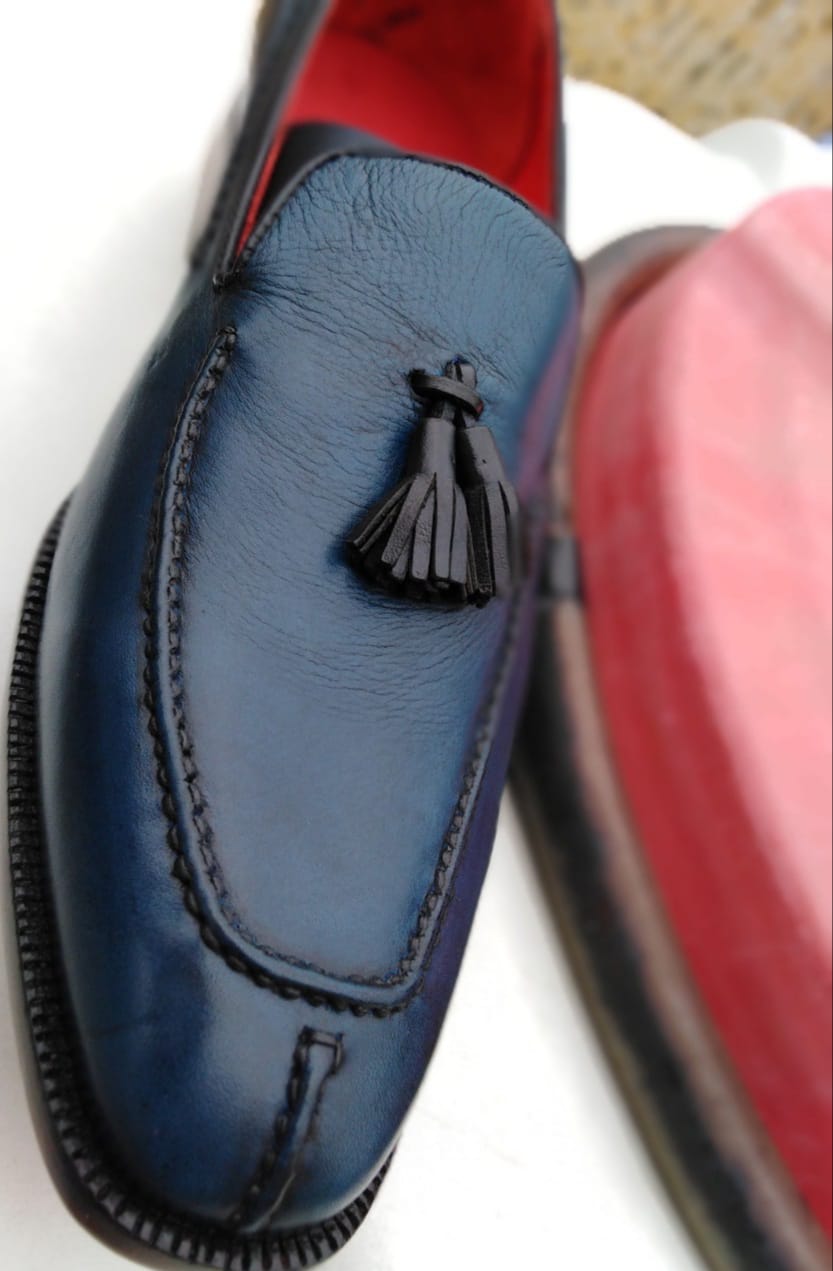 New Handmade Navy Blue Tassels Loafer Leather Formal Shoes