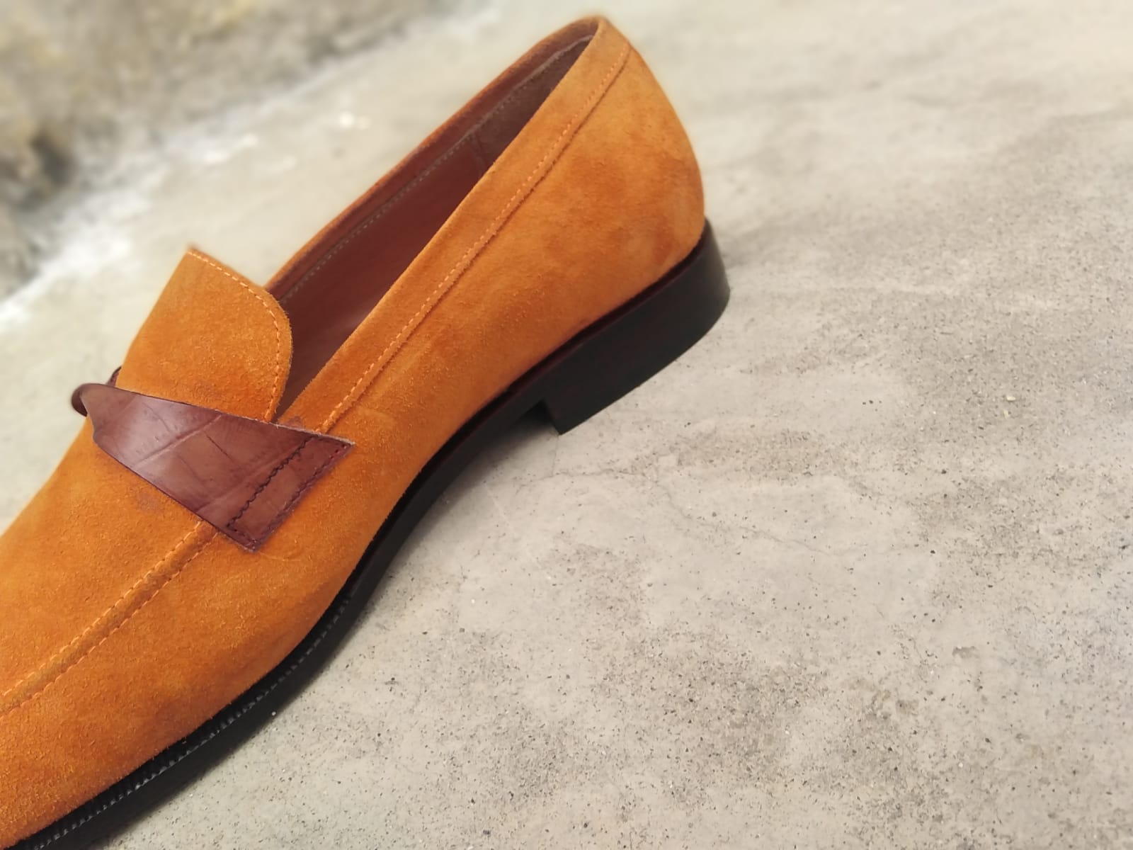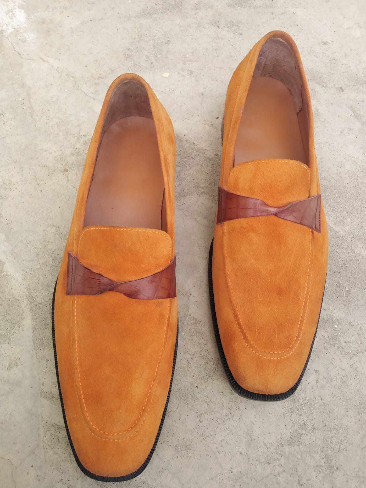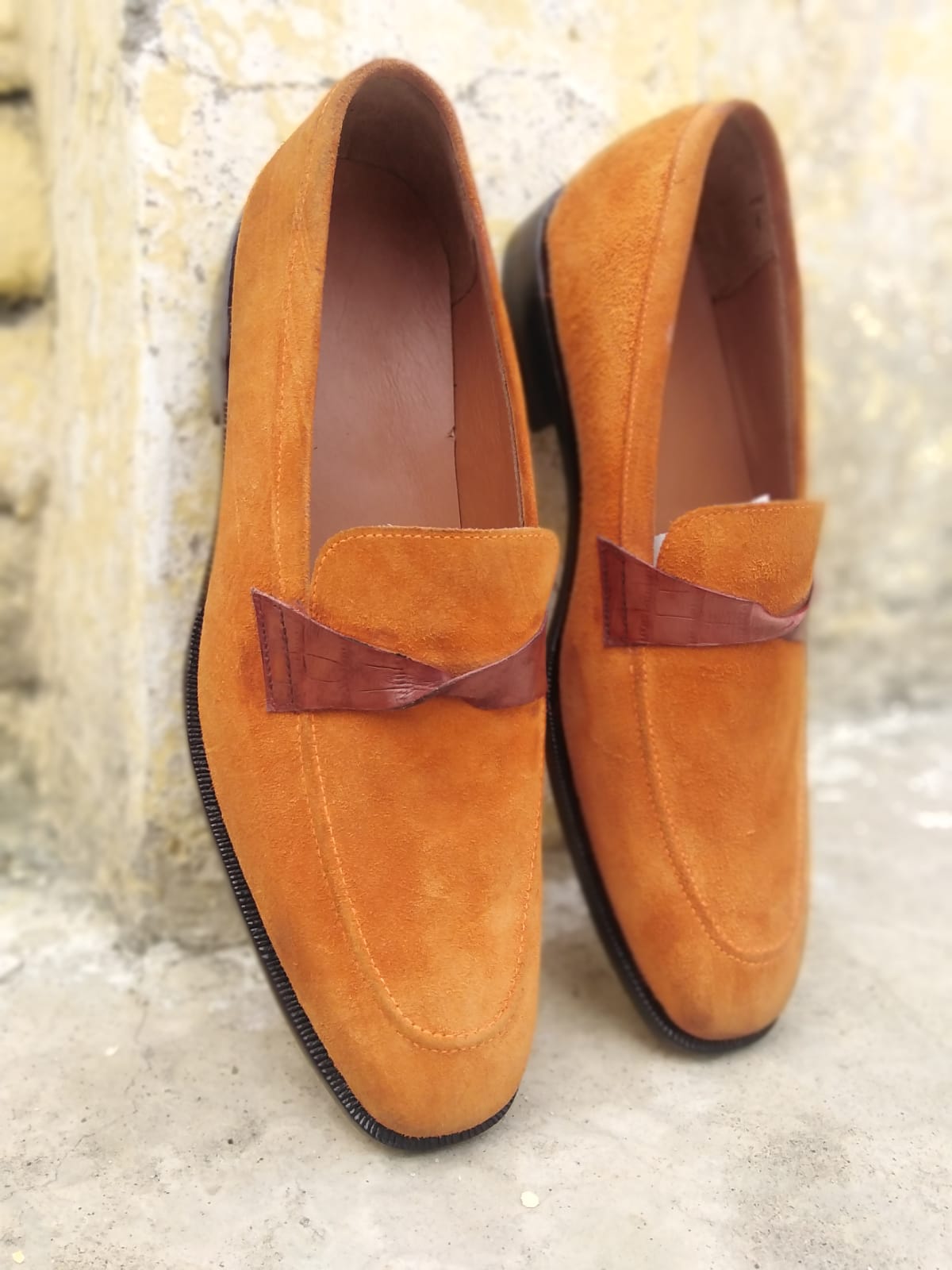 New Handmade Orange Suede Moccasin Loafer Shoes