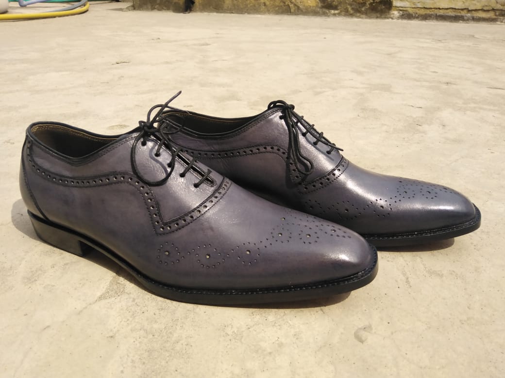 Luxury Grey Oxfords Brogue Leather Lace Up Shoes