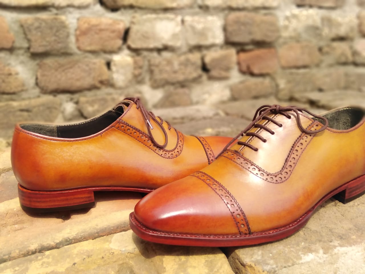 Best Hand Stitch Cap Toe Brown Lace Up Wedding Shoes