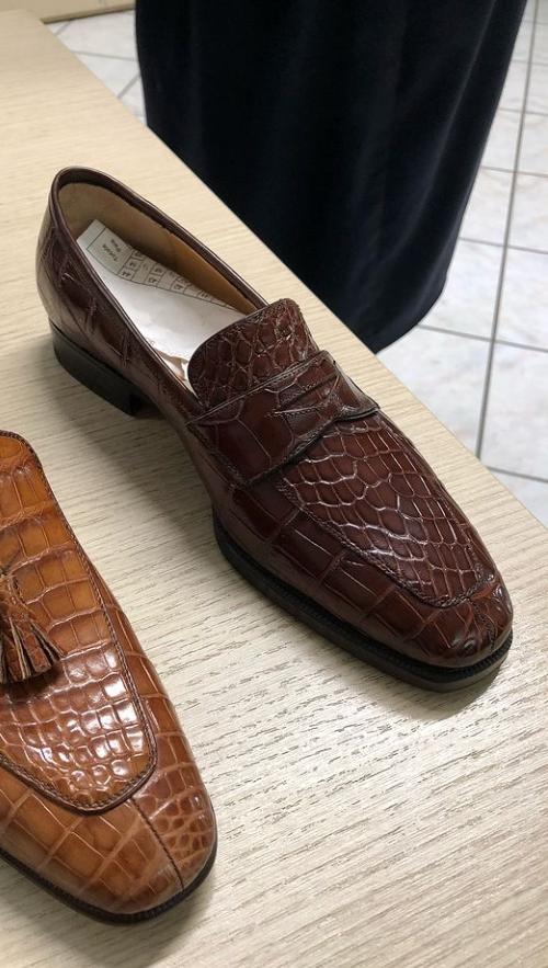 Elegant Classic Dark Brown Alligator Skin Penny Slips On Loafer Party Wear Shoes