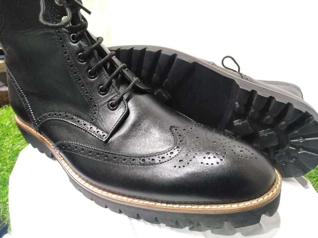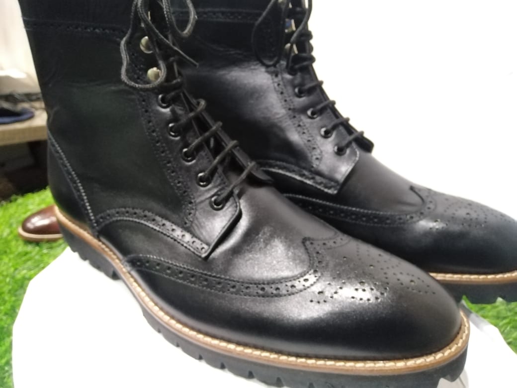 Awesome Wear Men's Handmade Black Ankle High Wingtip Brogue Lace Up Boot