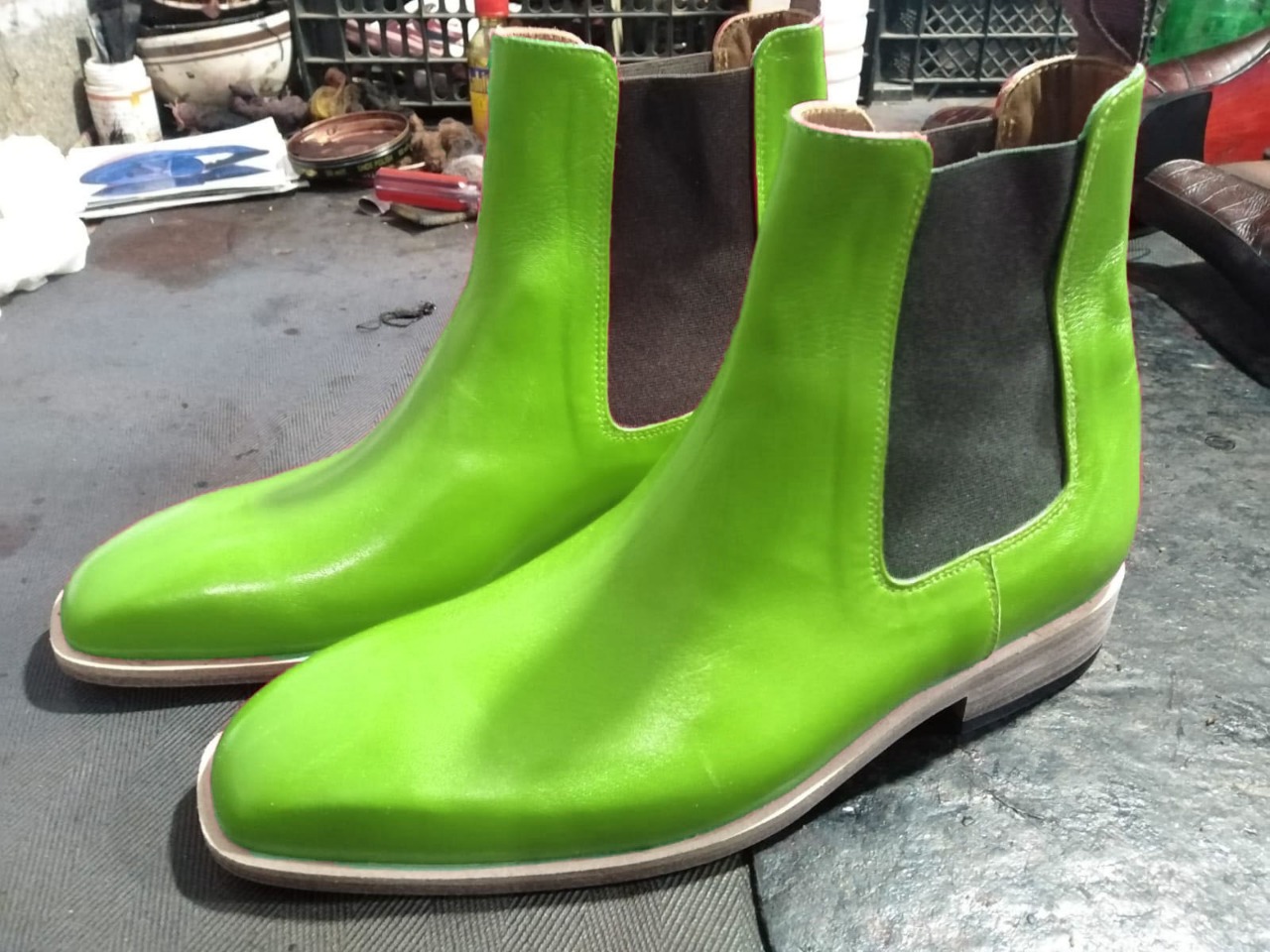 Handmade New Parrot Green Ankle High Casual Chelsea Dress Boot Limited Edition