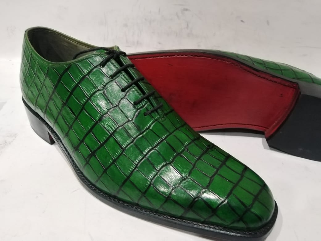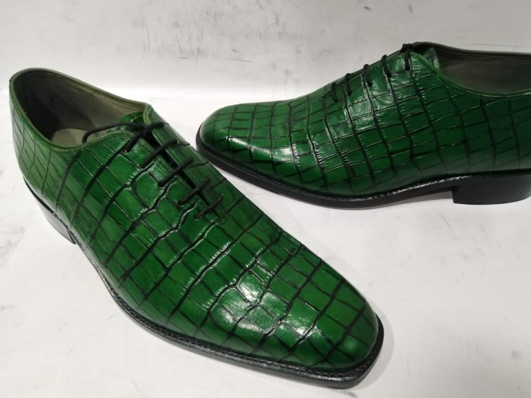 Men's Handmade Green Alligator Skin Lace Up Shoes