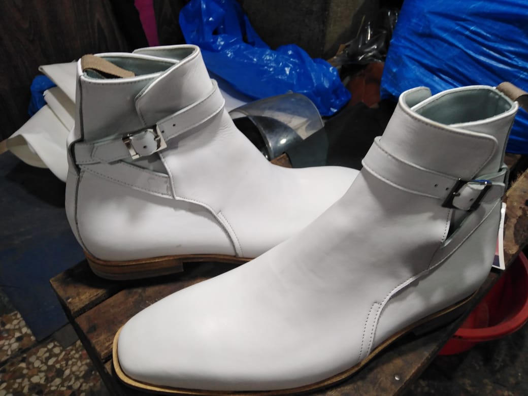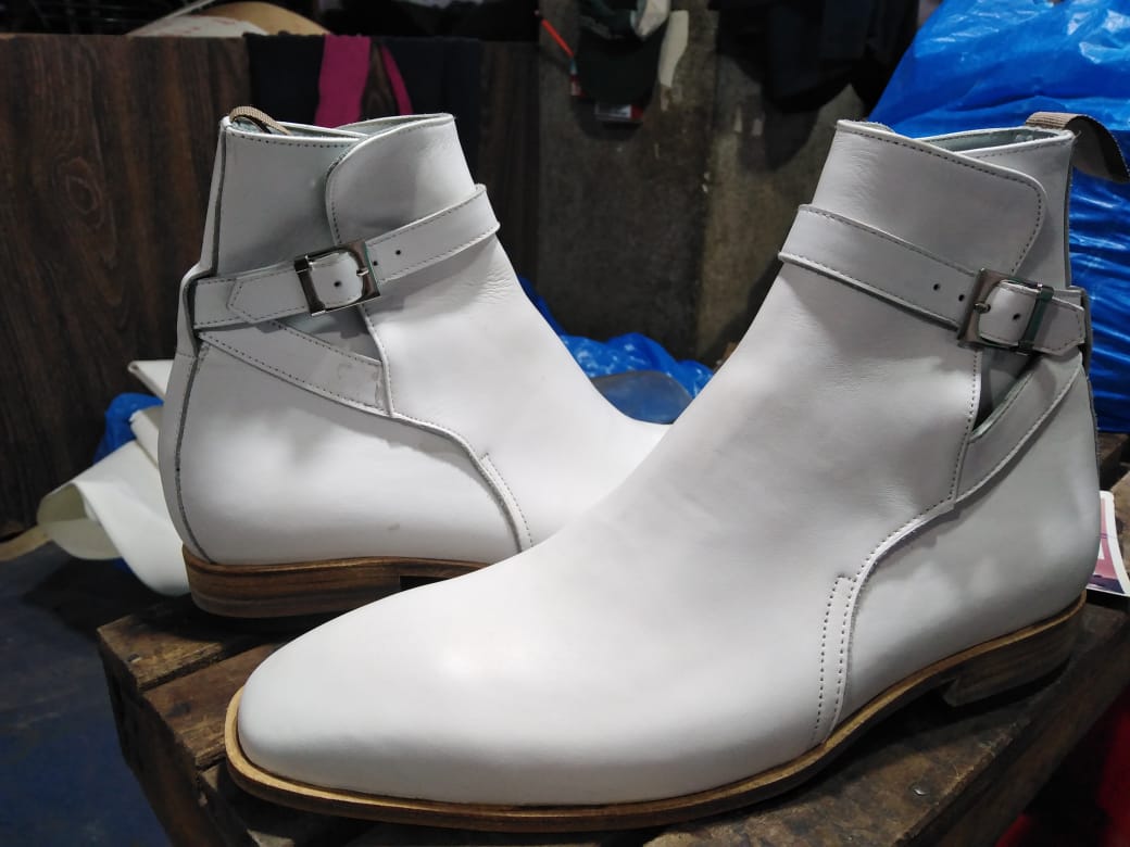 Best Fashion Cow White Jodhpurs Style Leather Monk Formal Boot