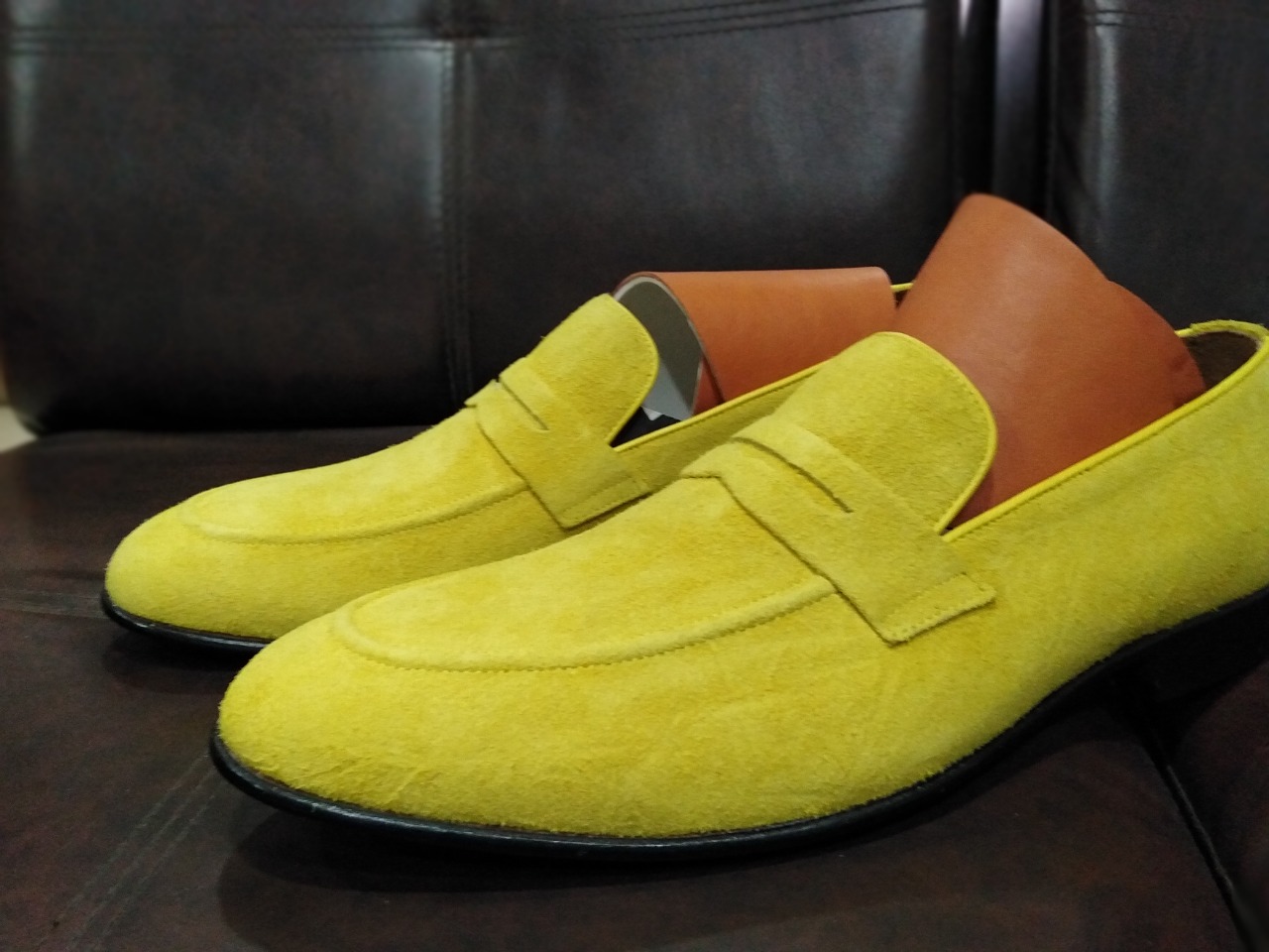 New Handmade Yellow Moccasin Loafer On Slips Shoes, Men's Suede Dress Wear Shoes