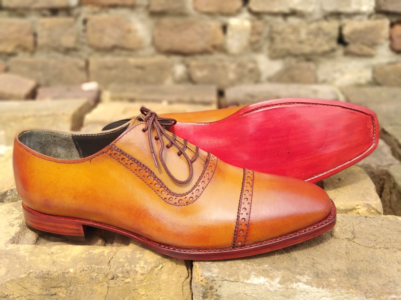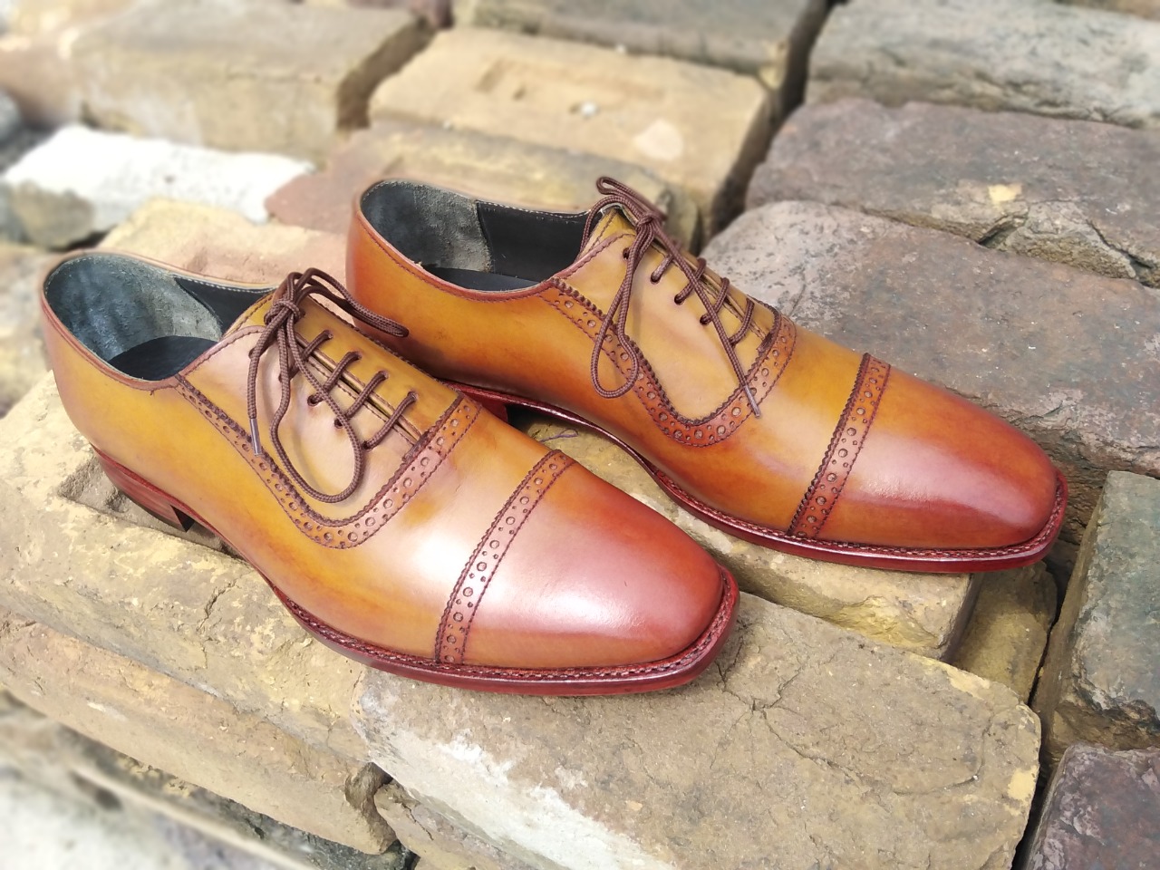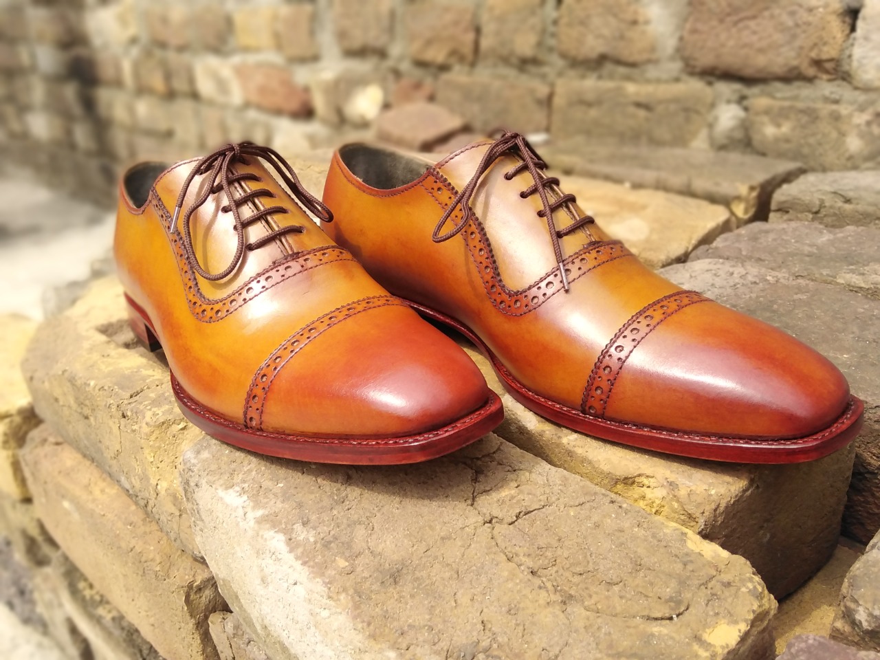 Men's Customise Oxfords Tan Brown Cap Toe Leather Shoes, Handmade Lace Up Shoes