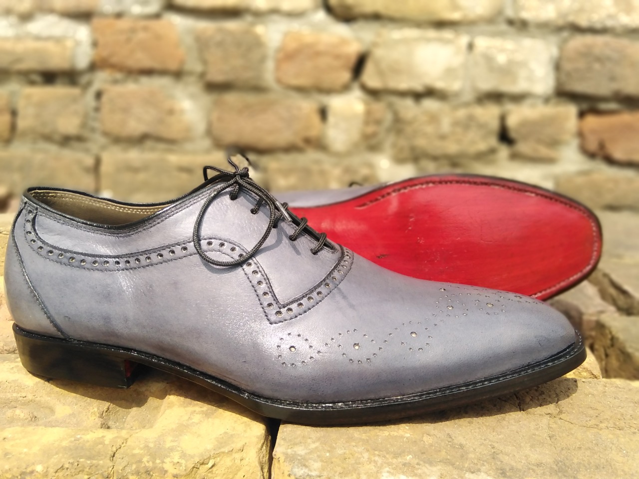 Men's Grey Leather Oxfords Touch Brogue Toe Bespoke Lace Up Handmade Shoes, Dress Wear Shoes