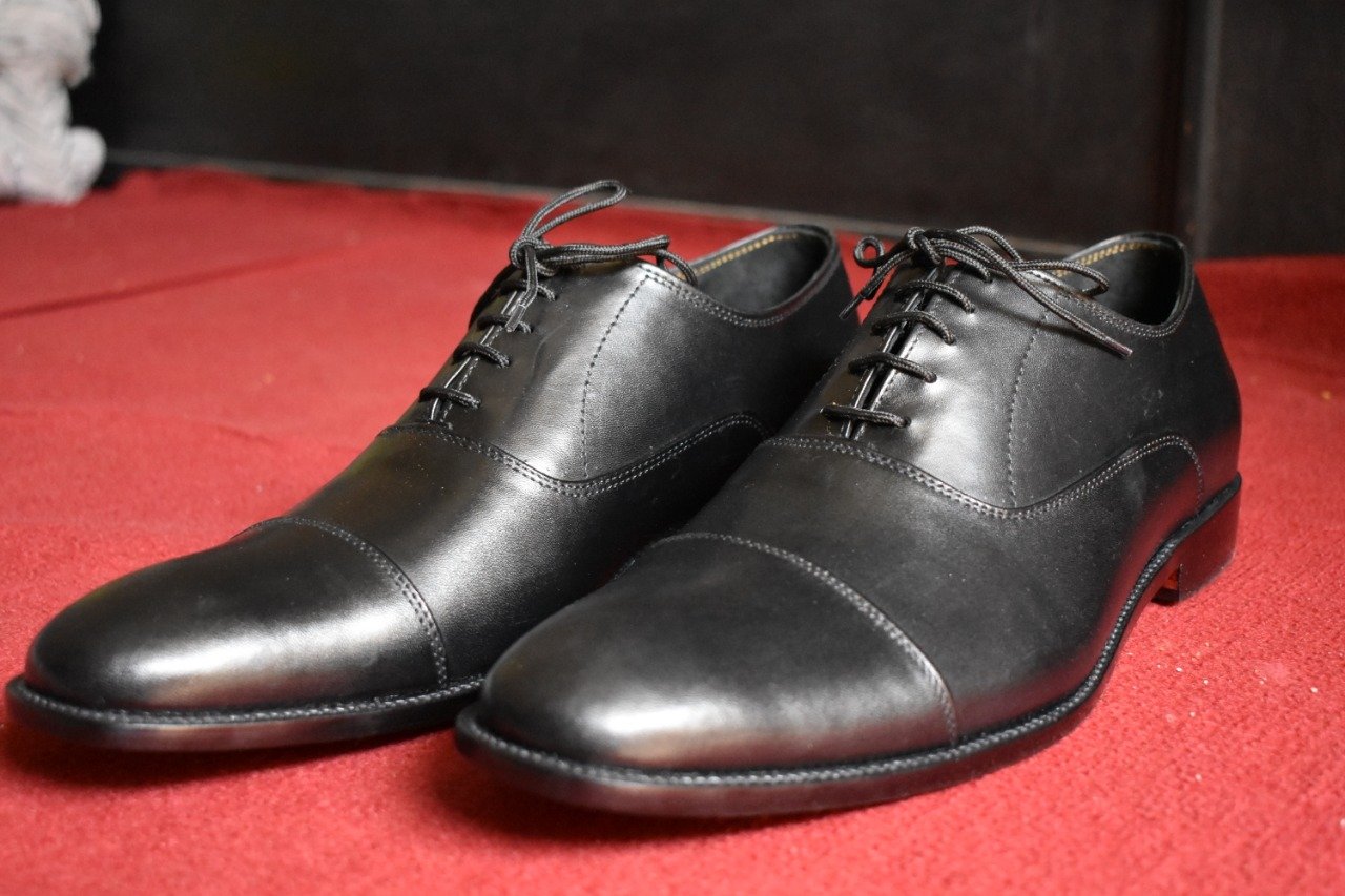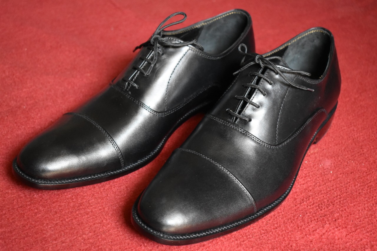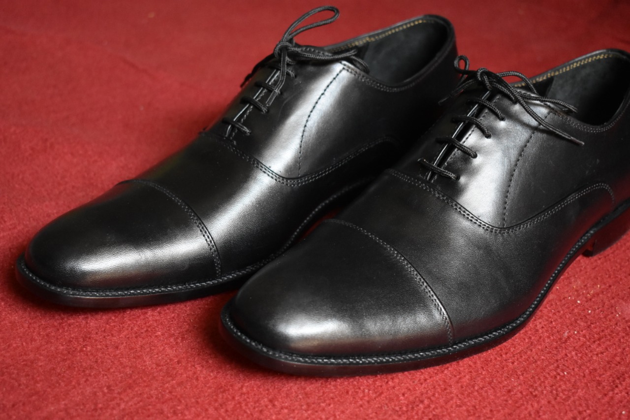 Handmade Men's Black Cap Toe Leather Office Shoes