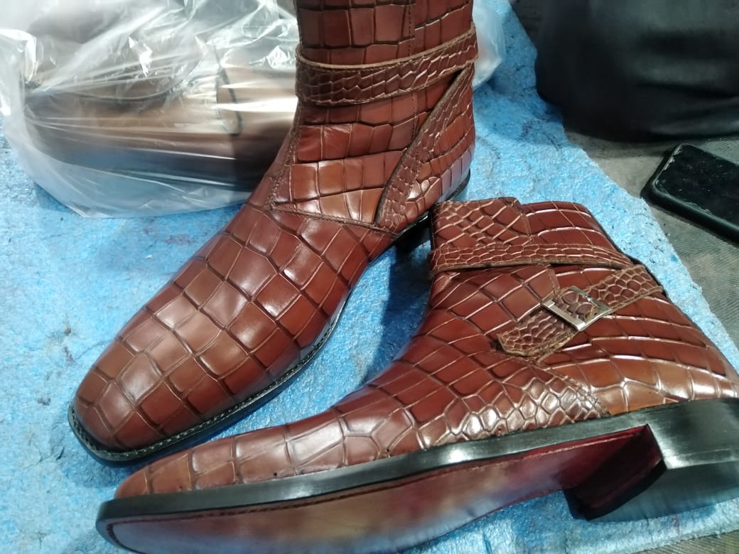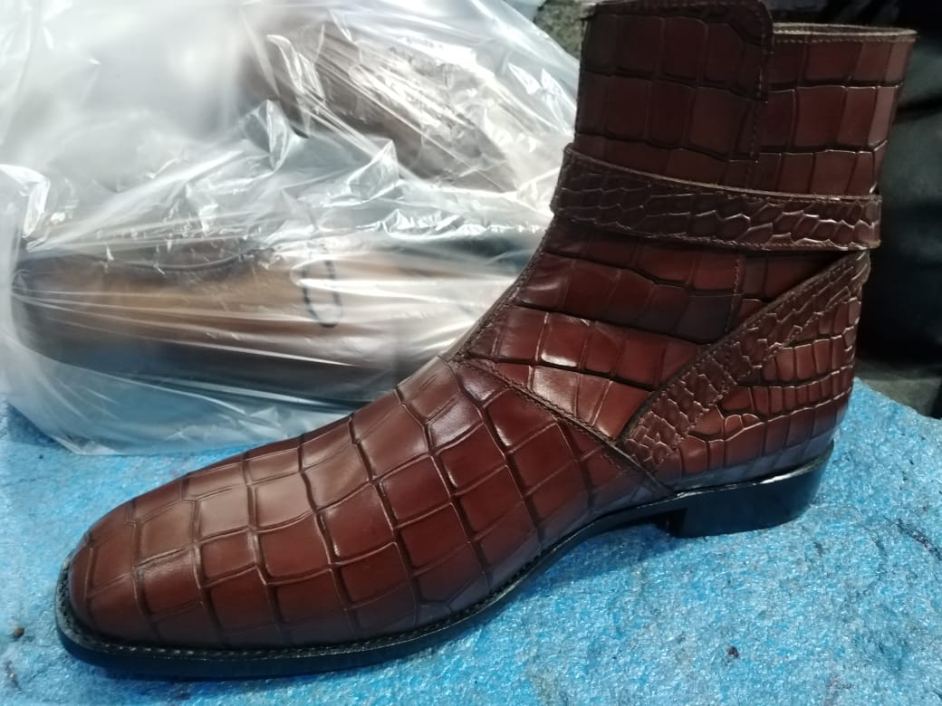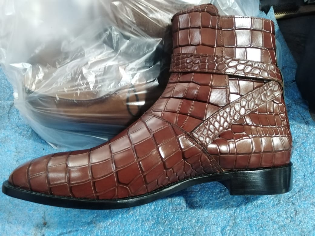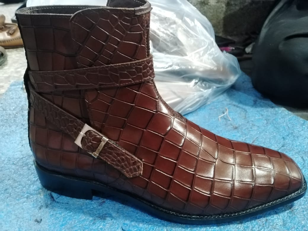 Best Fashion Brown Crocodile Skin Leather Buckle Boot