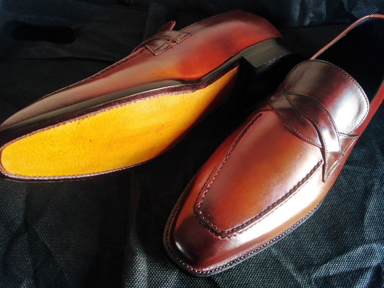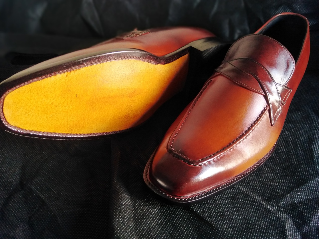 Outclass Men's Hand Stitch Brown Moccasin Shoes, Genuine Leather Formal Shoes