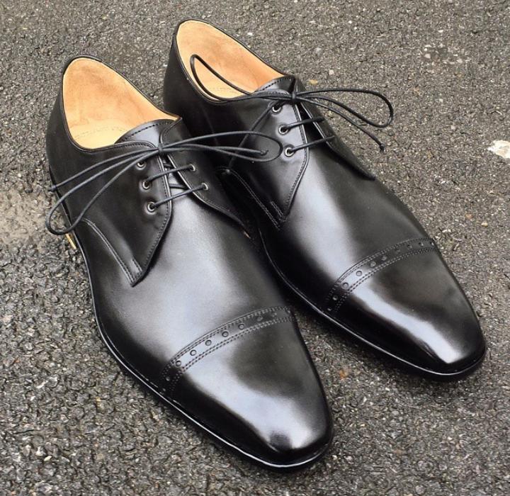 Christmas Men's Hand Stitch Black Cap Toe Style Lace Up Leather Shoes