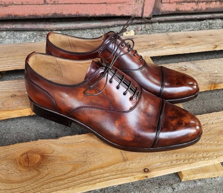 Handmade Brown Leather Cap Toe Lace Up Shoes