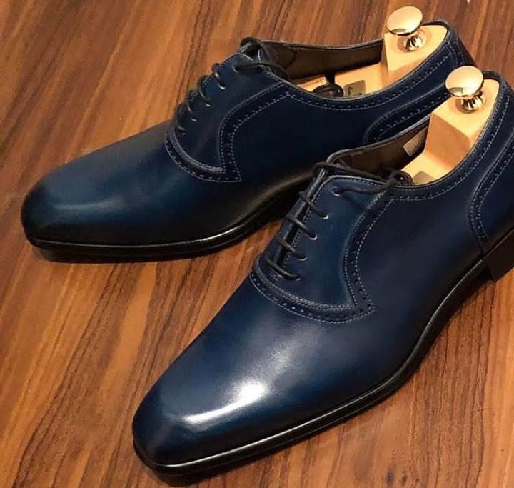 Western Style Traditional Blue Lace Up Shoes, Genuine Leather Office Shoes