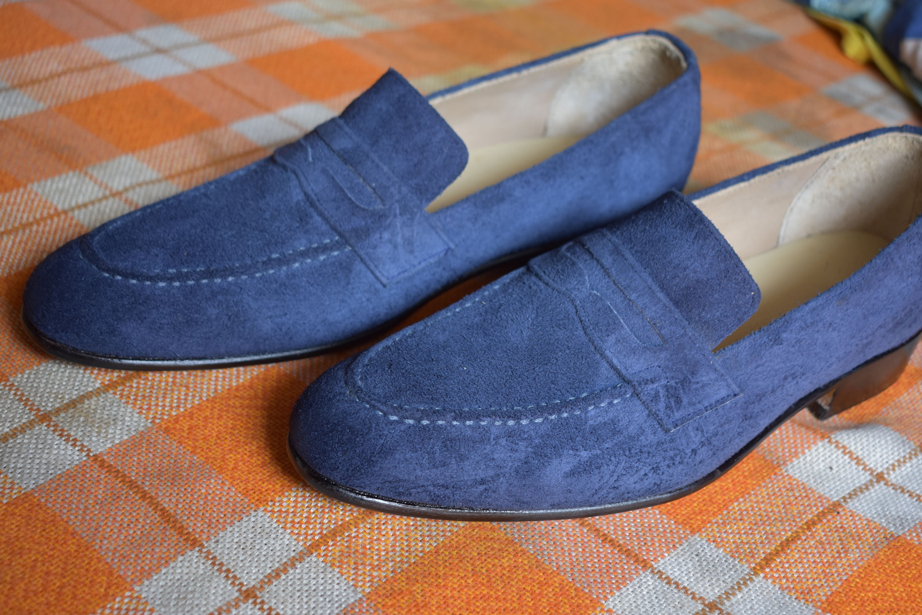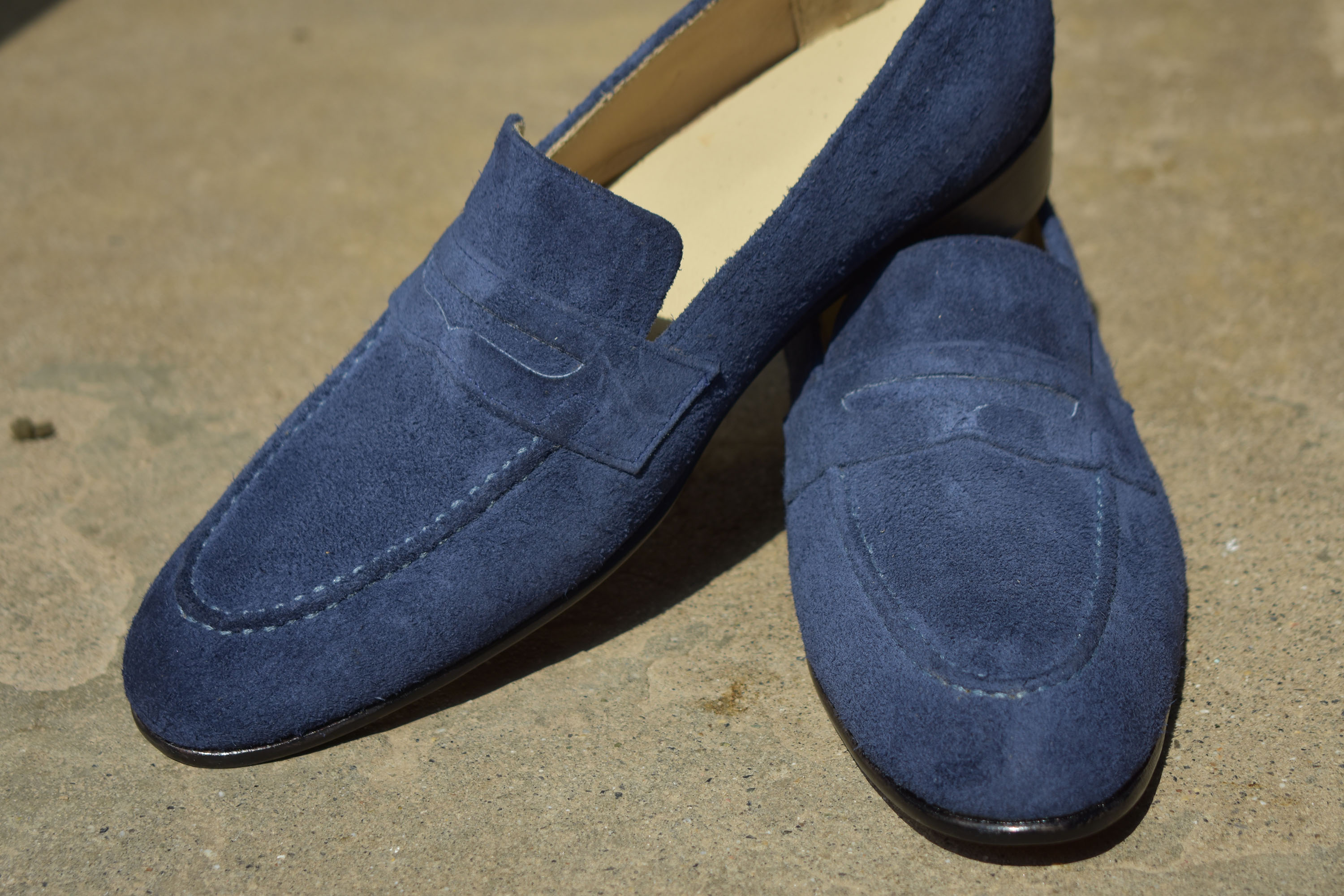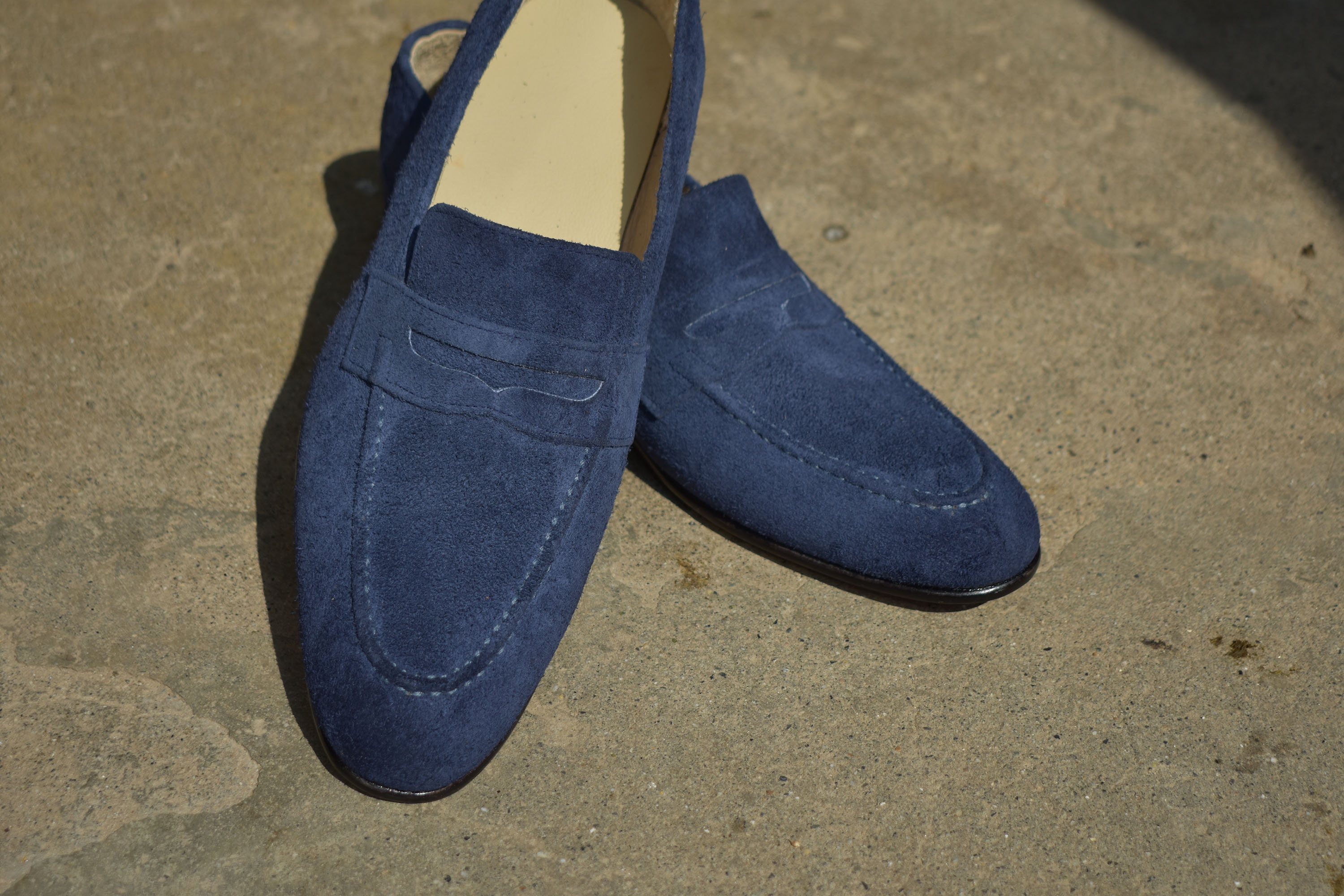 Hot Sale Men's Hand Stitch Attractive Shoes, Navy Blue Moccasin Genuine Suede Shoes