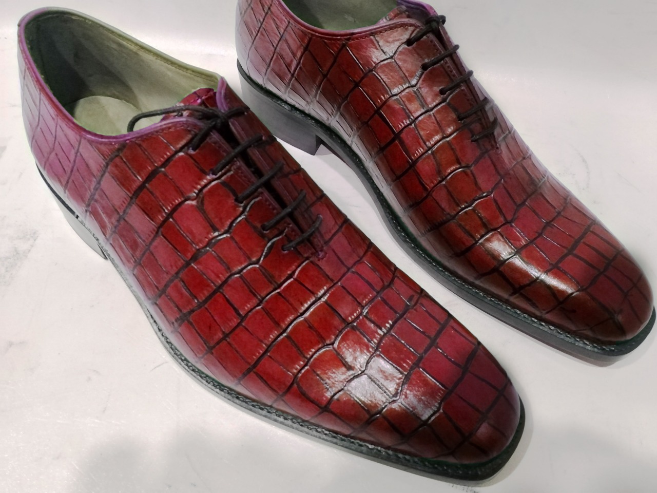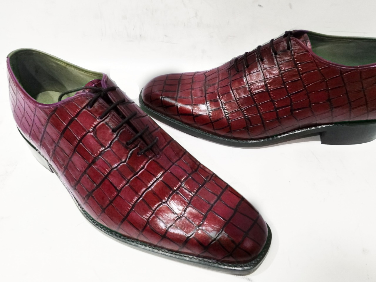 Latest Style Hand Stitch Attractive Red Shoes, Crocodile Skin Leather Wedding Lace Up Shoes