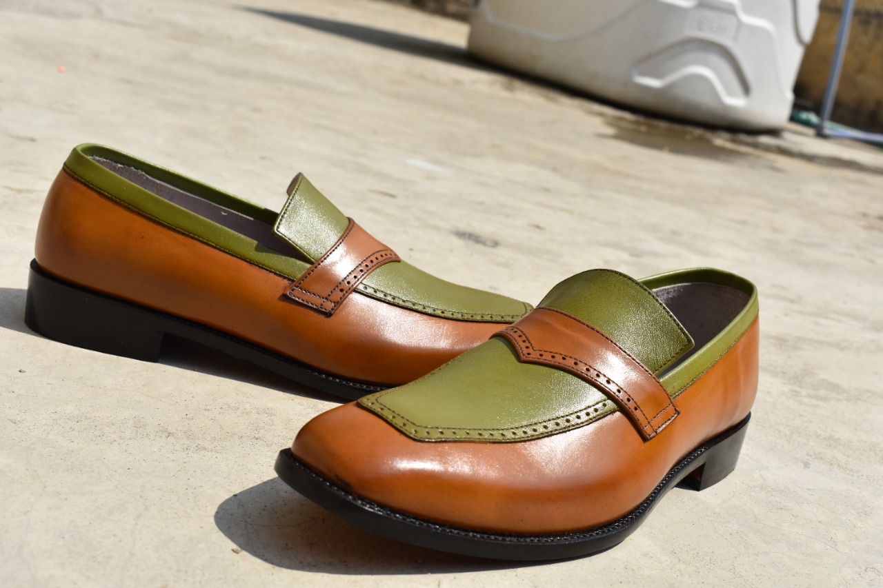 Men's Specially Customise Oxfords Texture Handmade Brown Leather Penny Loafers Shoes
