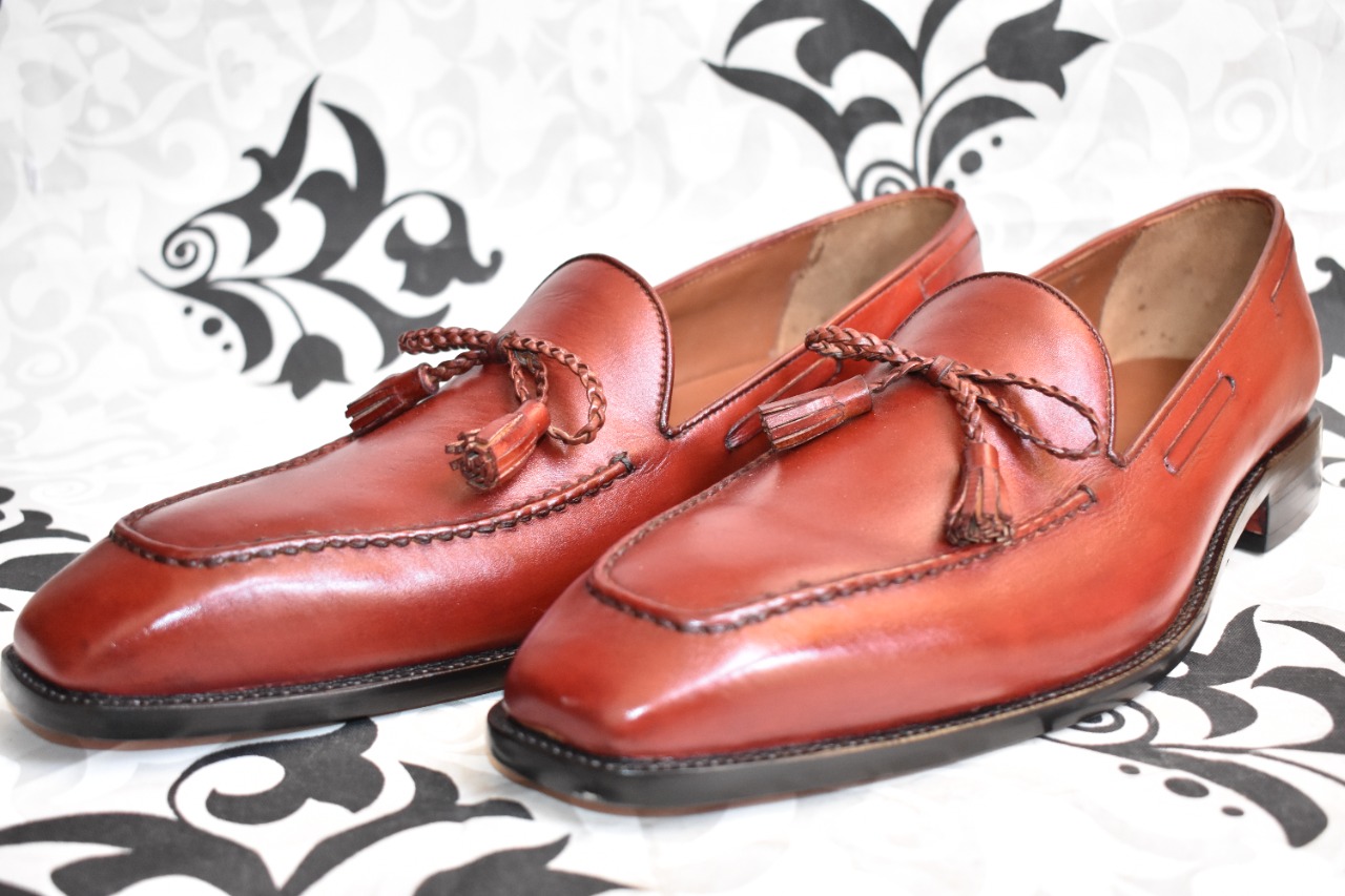 Classic Men's Hand Stitch Brown Tassels Loafer Shoes, Leather Formal Wear Shoes