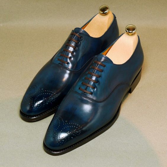 Hot Sale Men's Hand Stitch Blue Black Brogue Lace Up Formal Shoes