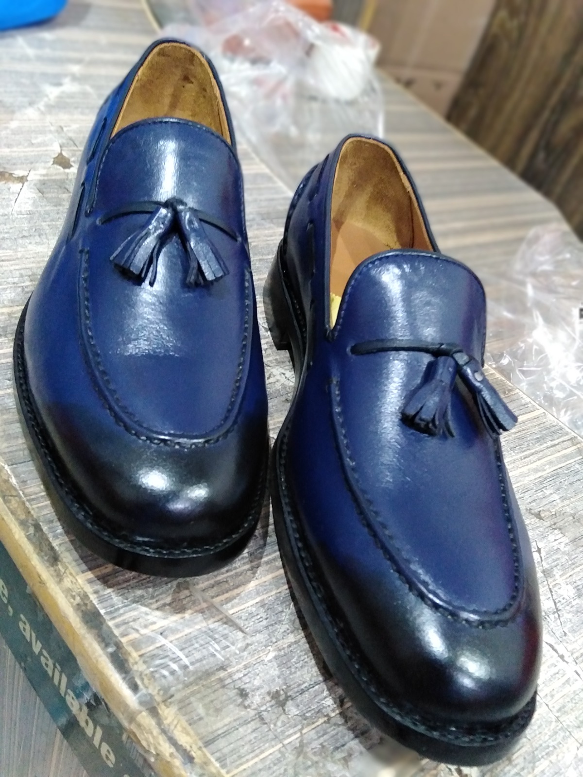 Best Wear Men's Hand Stitch Blue Tassels Loafer Leather Formal Wear Shoes