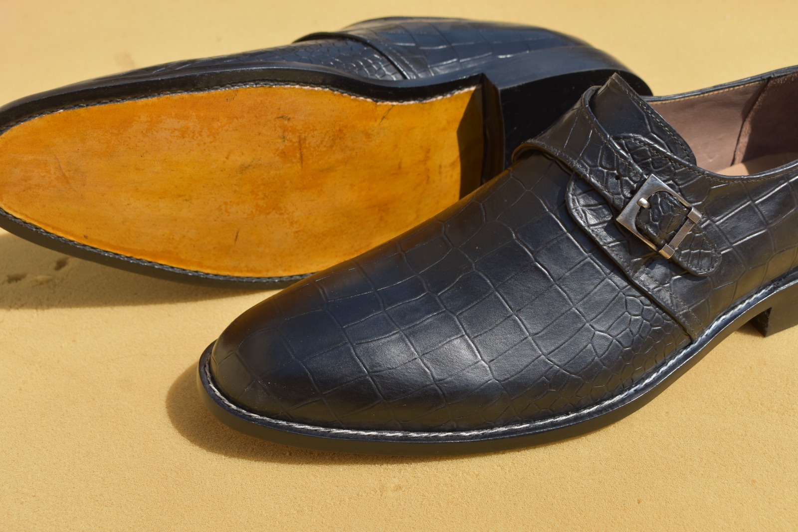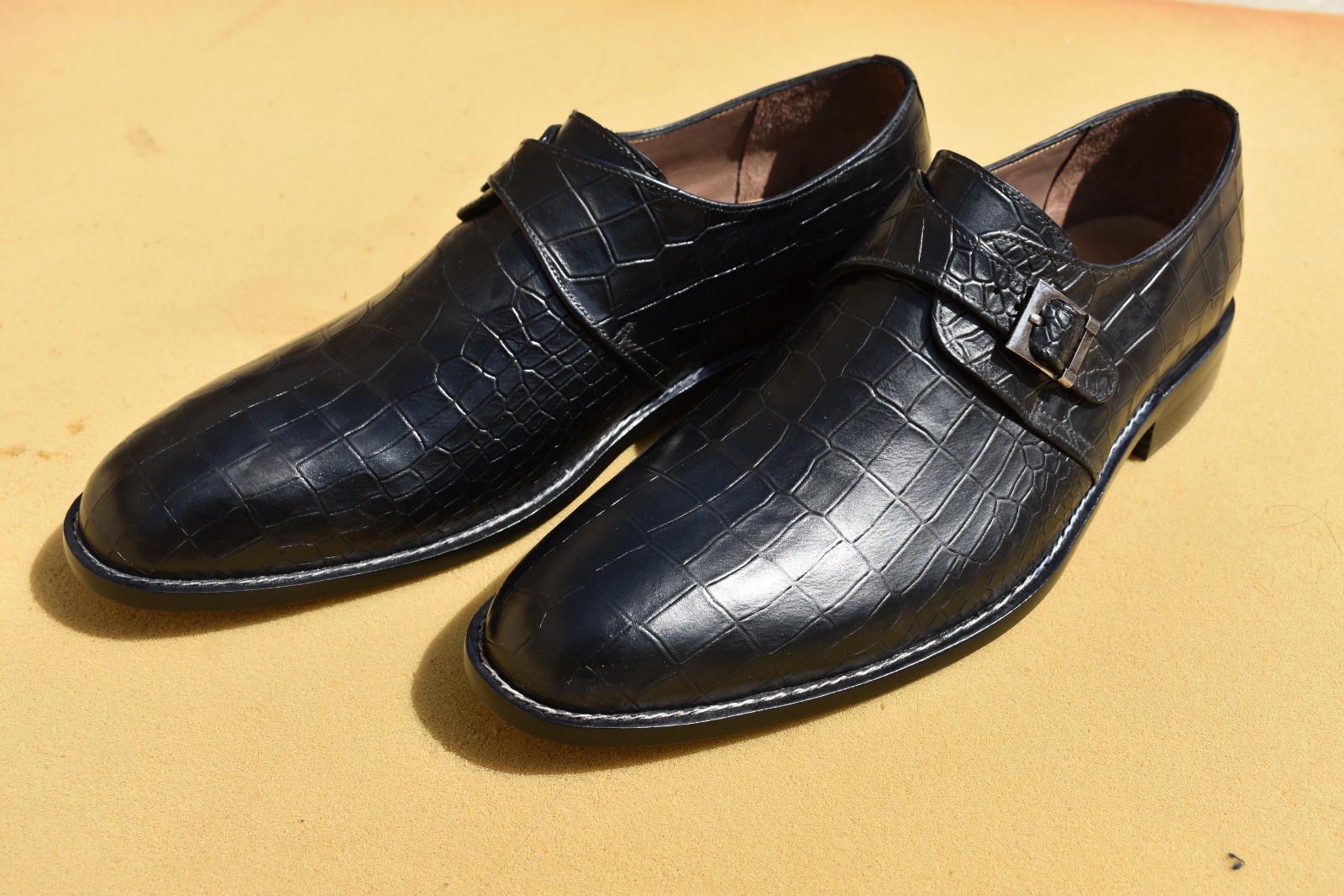 Latest Men's Hand Stitch Black Alligator Shoes, Genuine Leather Lace Up Formal Shoes