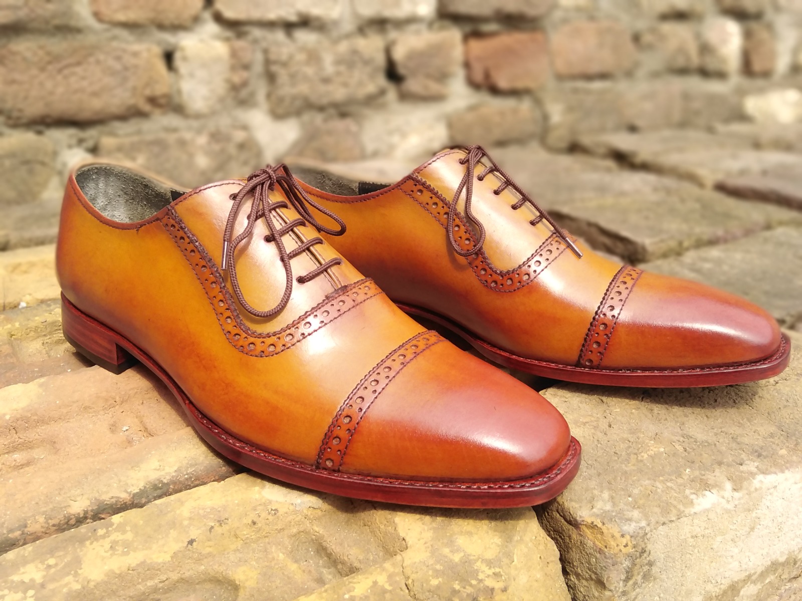 Classic Men's Handmade Brown Shoes, Genuine Leather Oxfords Cap Toe Lace Up Shoes