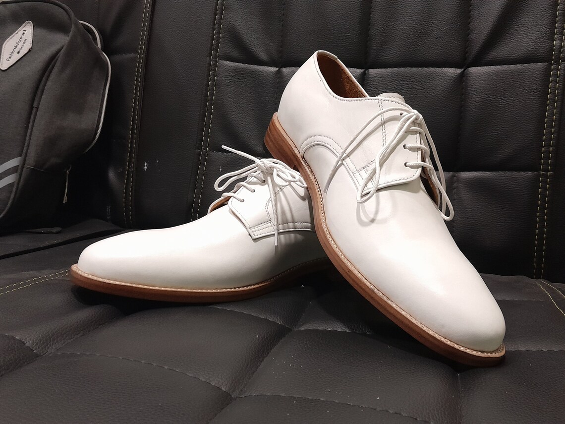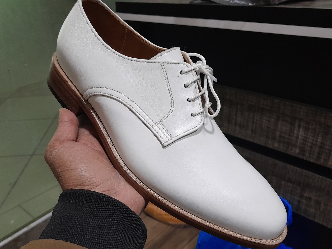 White Leather Finished Handmade Lace Up Shoes Available 7-13 US