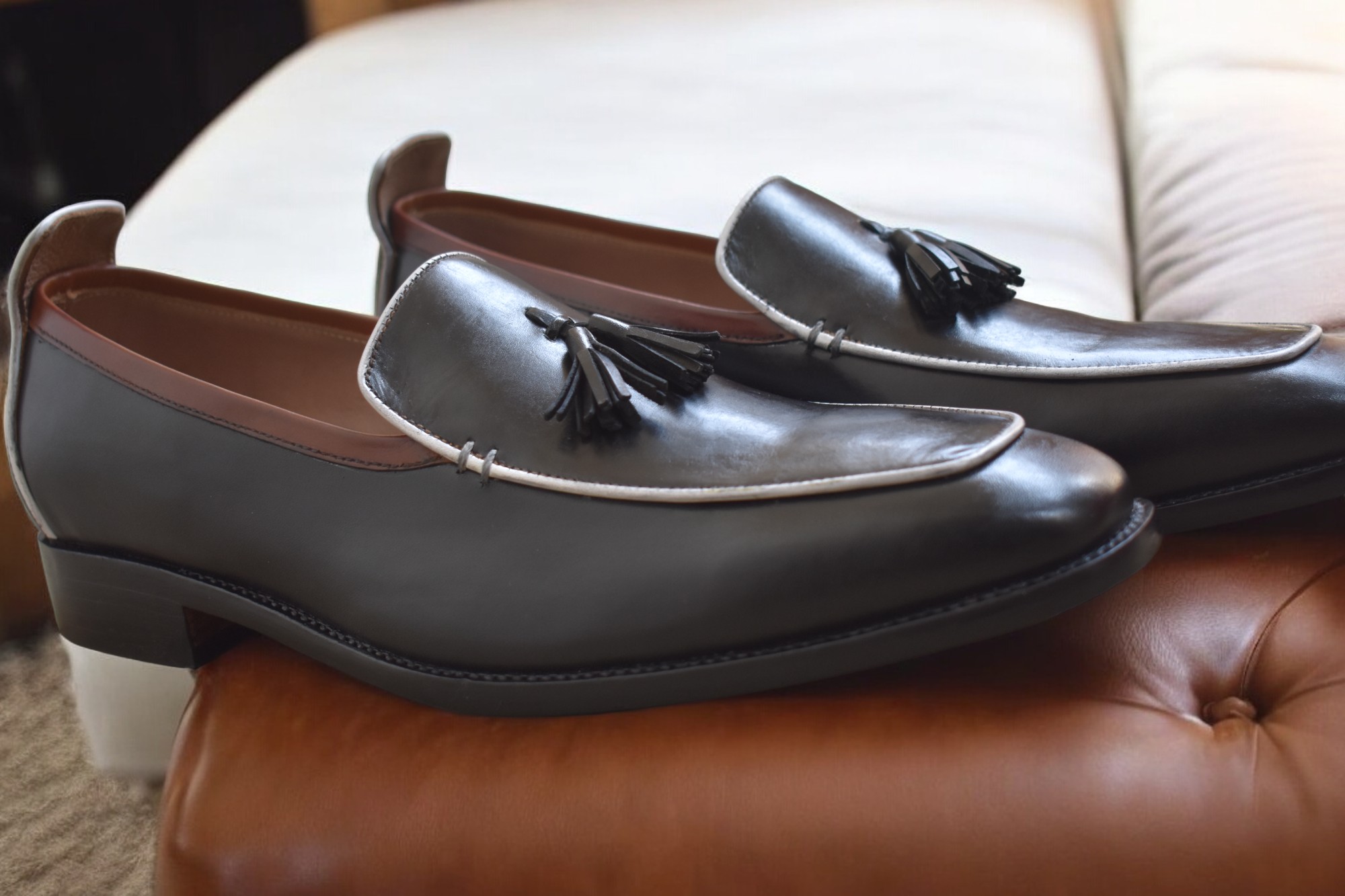 Handmade Black Tassels Design Loafers Slips On Moccasin Shoes