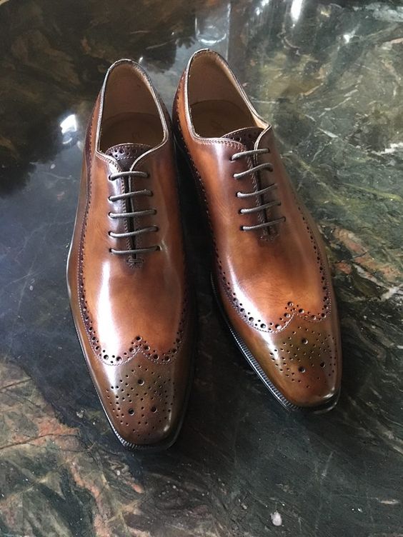 Handmade Men's Twotone Leather Polishing Dress Wingtip Lace Up Shoes