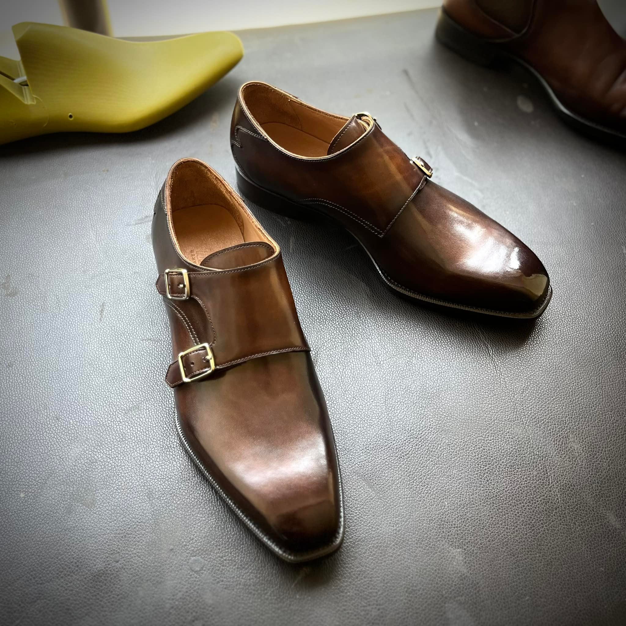 Handmade Men's Brown Leather Outstanding Formal Monk Strap Dress Shoes