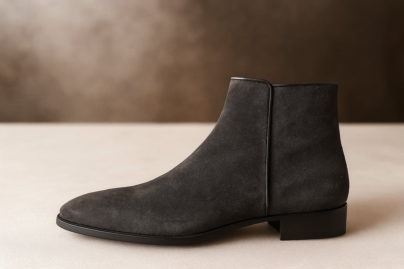 Men's Charcoal Suede Zipper Handmade Boot Durable Outdoor Workwear and Casual Fashion Shoes crafted for those who dare to stand out. Inspired by vintage military fashion and Victorian elegance, these ankle-high boots blend timeless craftsmanship with modern sophistication.